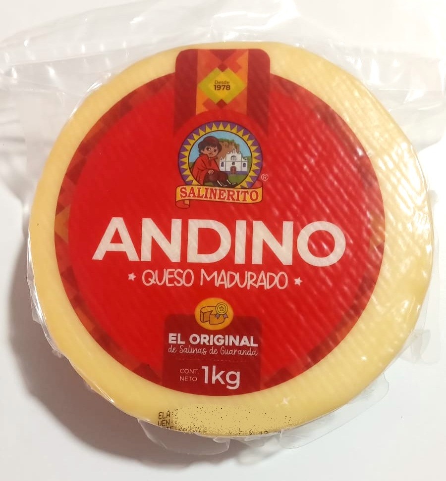 El queso andino madurado es un delicioso queso tradicional de mesa especialmente de la sierra ecuatoriana. Se caracteriza por su sabor suave, textura firme y a veces elástica, y un aroma agradable. Disponible en presentación de 1kg (imagen).